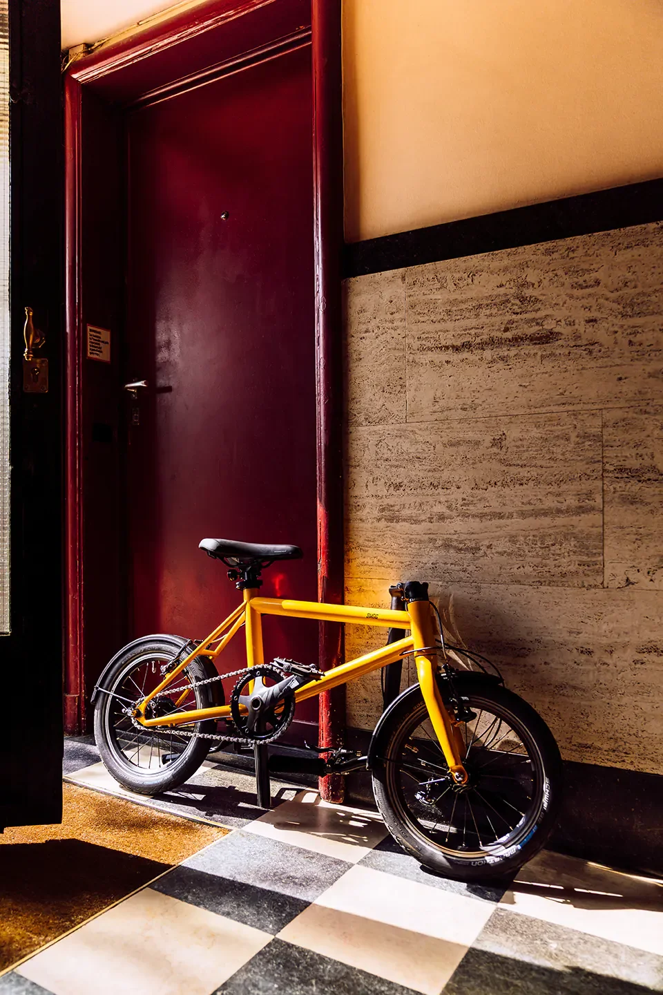 Le Mini est pensé pour la ville : il se range facilement et se transporte plus facilement qu’un vélo urbain classique, grâce à son format “mini” et son approche compacte.